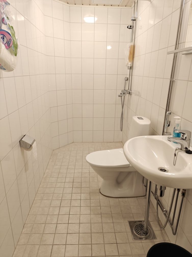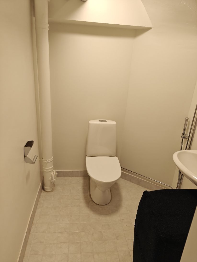Kellarissa hyväkuntoinen erillinen wc ja erillinen wc-suihkutila, lisäksi pienoiskeittiö.