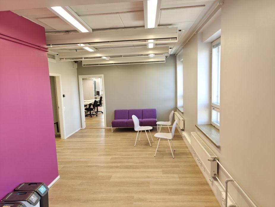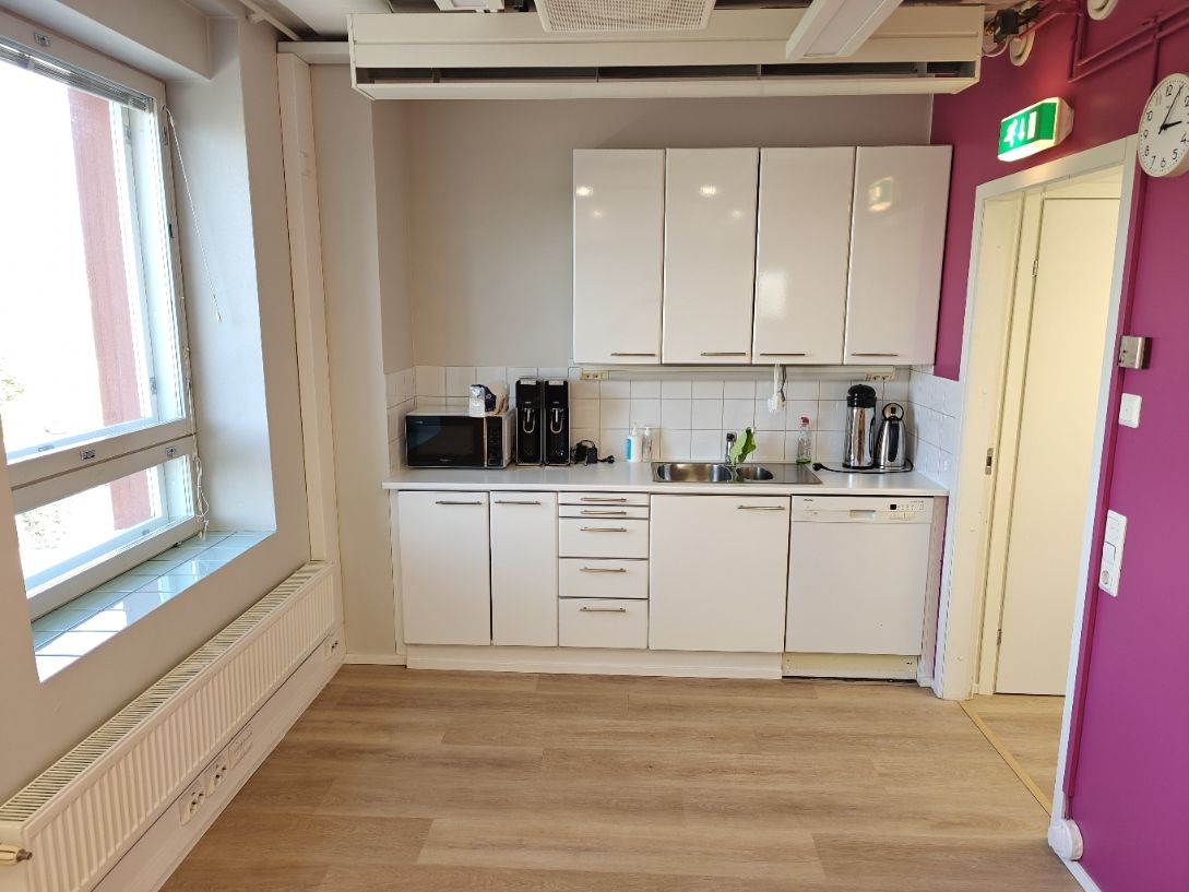 Erittäin hienossa kunnossa oleva toimistotila, jossa useita huoneita, neuvottelutilat ja sosiaalitila, kaksi keittiötä; kuntohuone, 3 x wc, suihku- ja pukeutumistila vaikka työmatkapyöräilijöille.