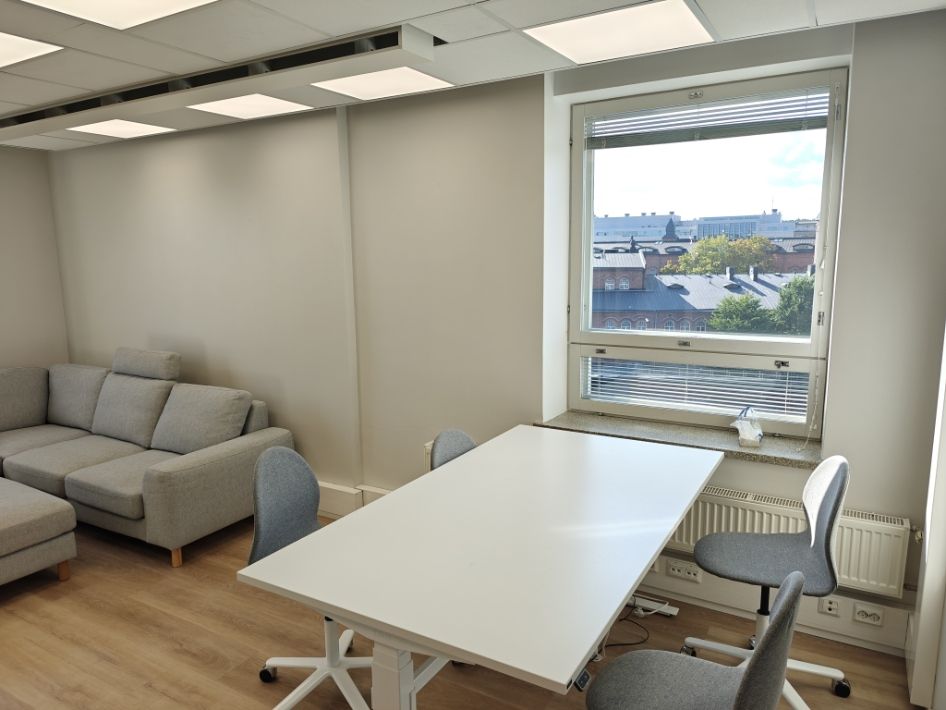 Kuvissa näkyvien kalusteiden osalta voidaan neuvotella niiden käytöstä, mukana mm. kaksi Frameryn puhelinkopppia, toimistokalusteet, sähköpöydät, jne.