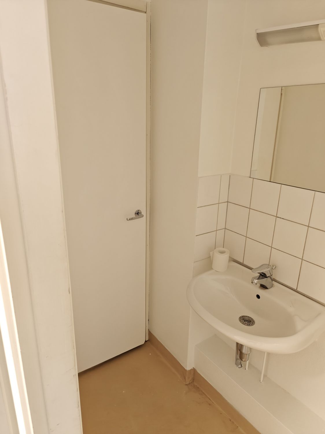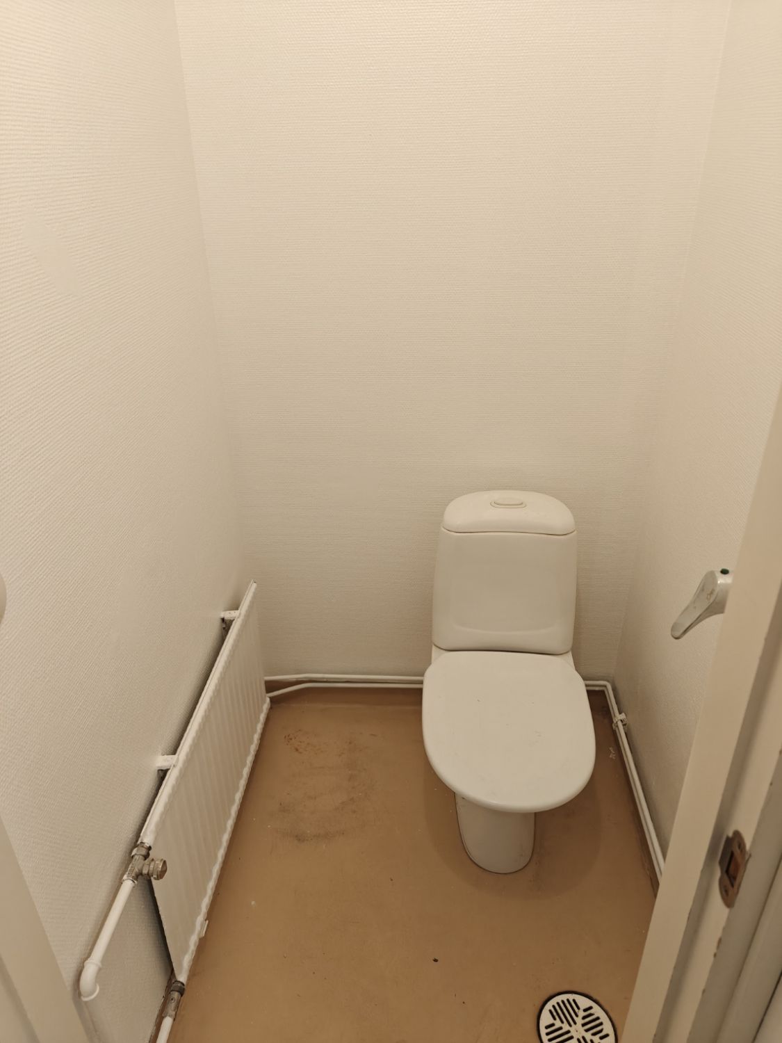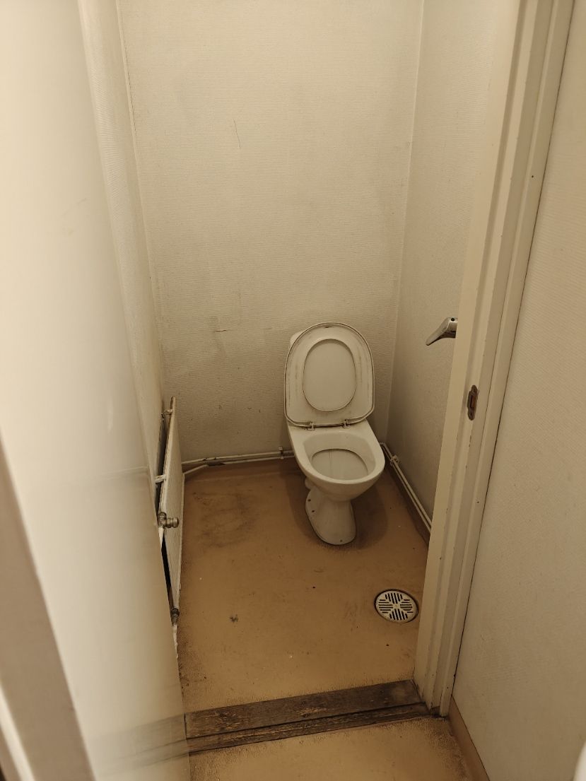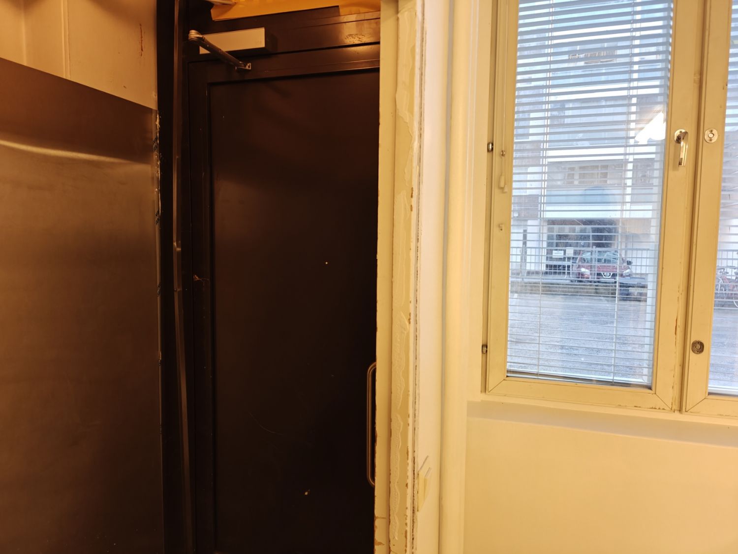 Liiketila, jossa etuosassa pitkänomainen liiketila, takaosassa kaksi wc:tä ja iso huone, ikkuna ja ovi sisäpihalle.