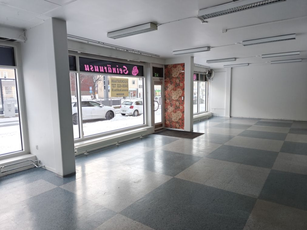 Nopeasti vapautuva liiketila, mahdollista jakaa myös kahtia, noin 62 ja 100 m2 tiloiksi.