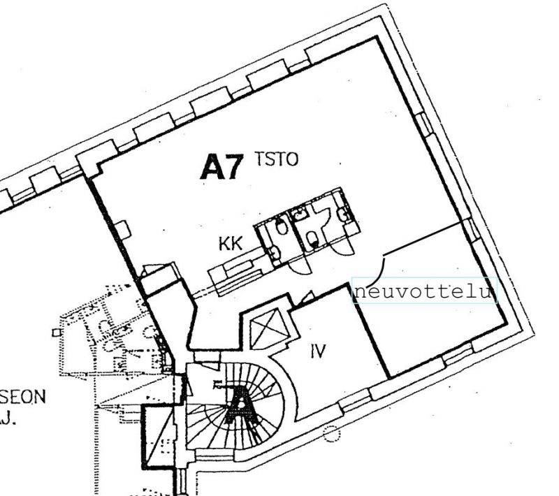 Erittäin siistikuntoinen ja viihtyisä avotoimistotila kauniilla kaari-ikkunoilla jyhkeässä kivilinnassa Mika Waltarin puistikon laidalla Runeberginkatu 43 kiinteistössä, sisäänkäynti Oksasenkadun puolelta. Tilassa on neuvotteluhuone, keittiö, 2 x wc sekä siivouskomero. Kiinteistössä on on tehty perussaneeraus vuosituhannen vaihteessa ja siinä on jäähdyttävä ilmastointi ja tehokas tietoliikenneverkko. Oma autohalli ja pihapysäköinti sekä kadunvarsipysäköinti yritystunnuksilla. Pohjakuvassa huoneisto A 7. Ota yhteyttä ja sovi esittely, vuokrauspalvelumme on tilanhakijoille maksuton.