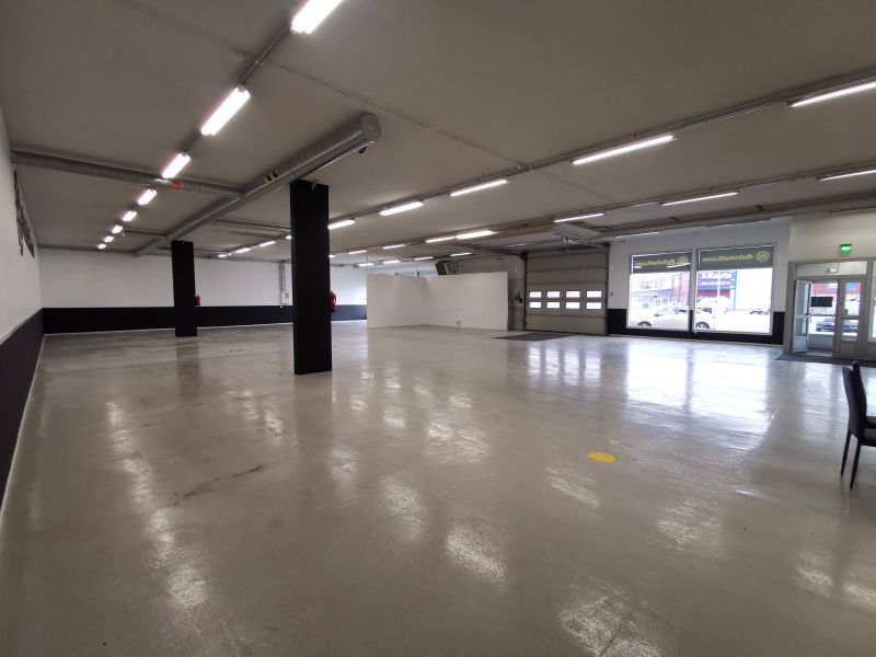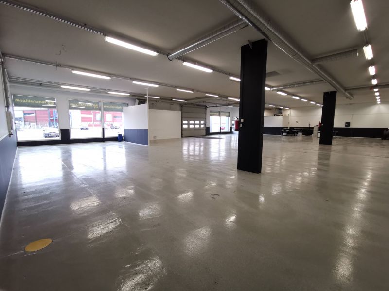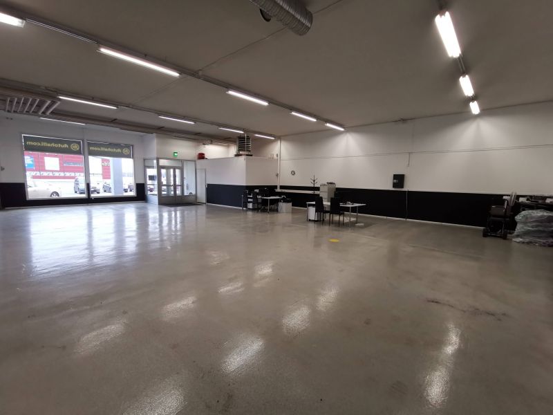 Siistiä liiketilaa, isot ikkunat, hyvä näkyvyys, nosto-ovi, iso piha.