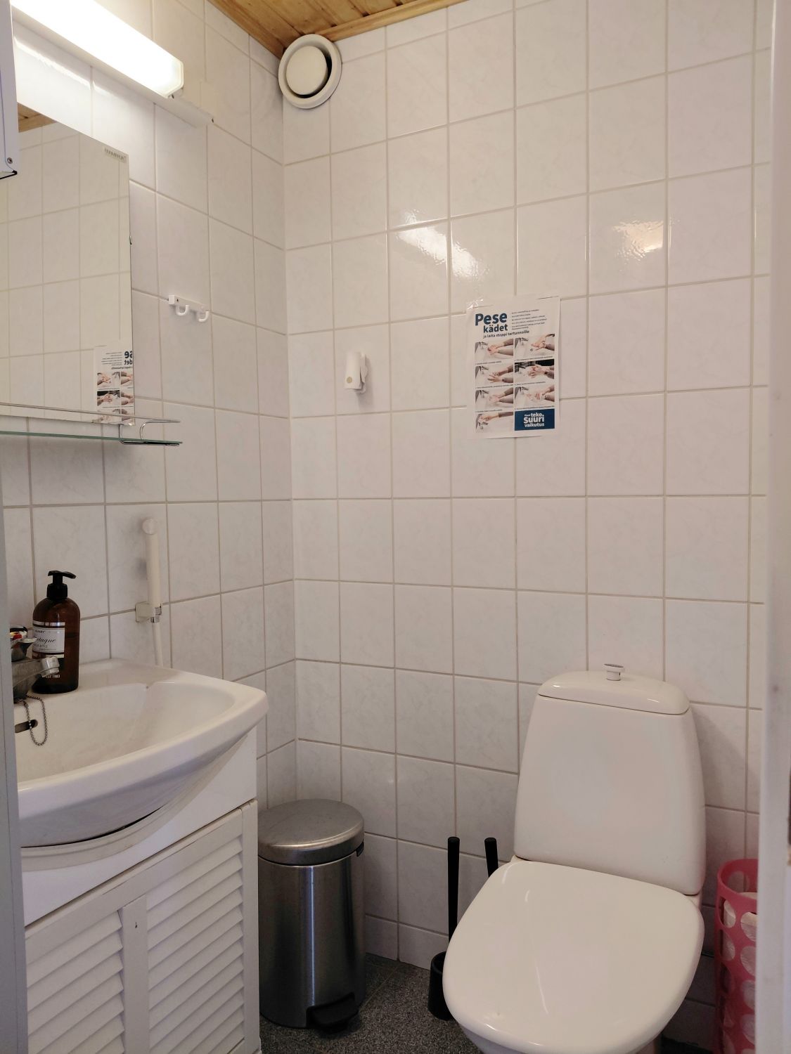 Tilan varustus: laattalattiat, vinot sisäkatot, erillinen WC ja suihku