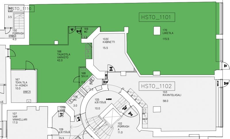 Liiketila koostuu 115 m2:n myymälätilasta sekä 47 m2:n varasto- ja taukotilasta.