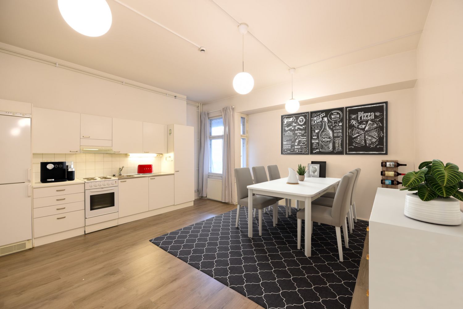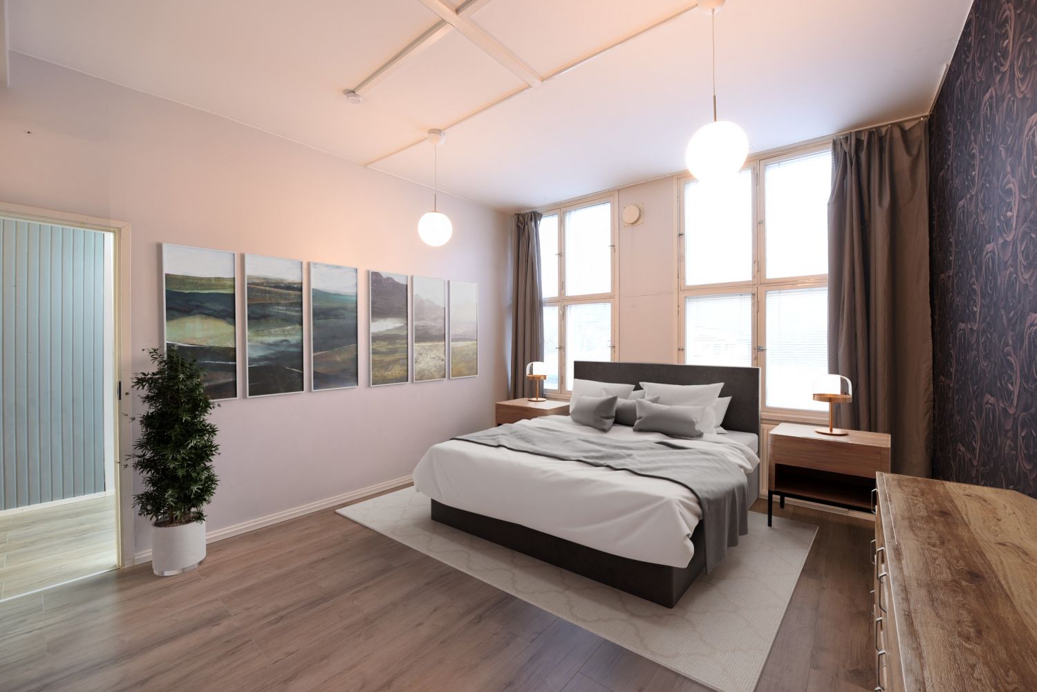 Tilassa on normaalia korkeampi huonekorkeus ja paljon ikkunoita, joten vaikuttaa neliöitään suuremmalta.