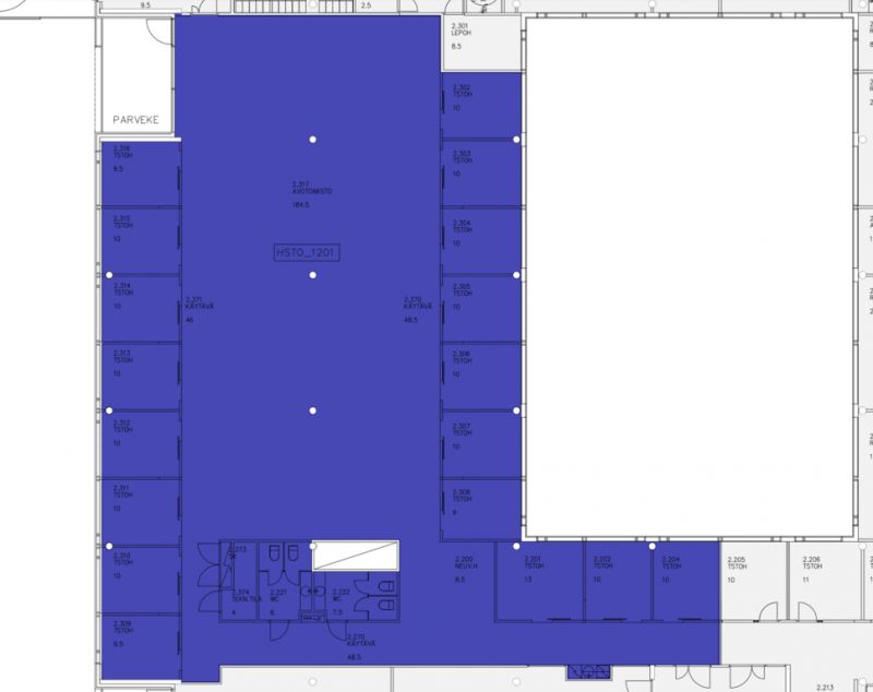 Kiinteistössä toisessa kerroksessa vapaana 697,5m2 hyväkuntoinen avotilaa ja huoneita sisältävä toimistokokonaisuus.