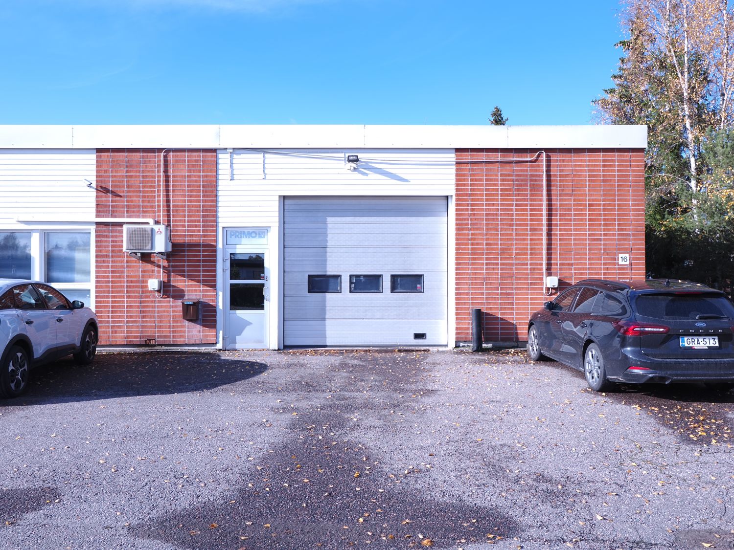 Käyntiovi katutasosta. Lämmitys ilmalämpöpumpuilla.