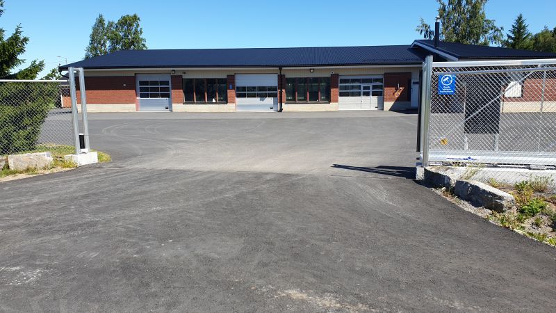 Kiinteistössä paljon ikkunapinta-alaa, piha asfaltoitu sekä liittymä 3-tieltä saakka, piha-alueelle ajo sähköisen liukuportin kautta. Kiinteistössä useita nosto-ovia. Rikosilmoitin / kameravalvonta 24/7.