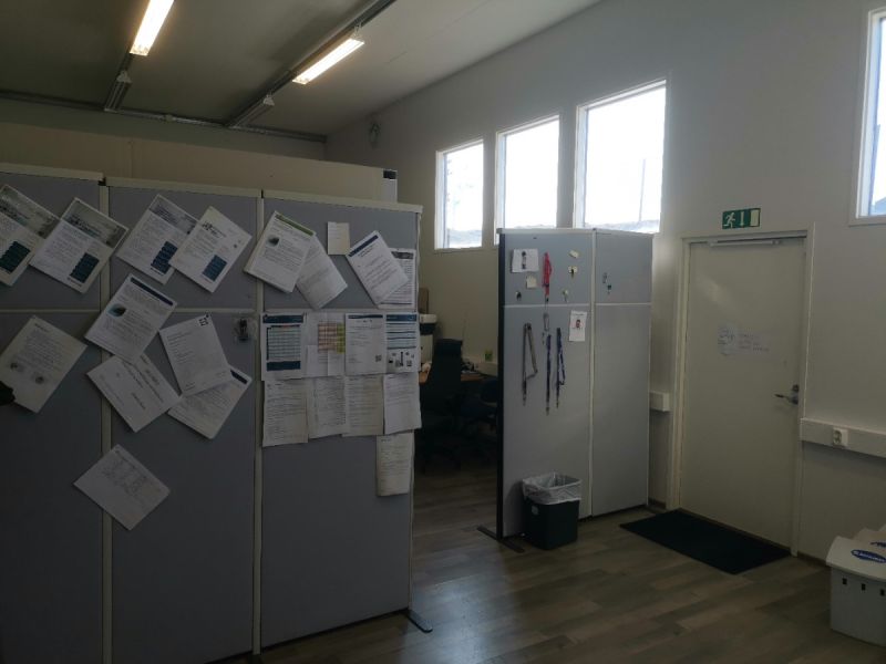 Tuotannon, toimiston ja varastoinnin puoli on suunniteltu sujuvaa arkea varten.