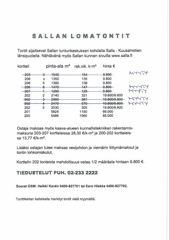 Ostaja maksaa kauppahinnan lisäksi kunnallistekniikan rakentamisesta 13,77 e/ rak. oik. k-m², eli yht. 14.596,20 €, sekä vesijohdon ja viemärin ja sähkön liittymämaksut.