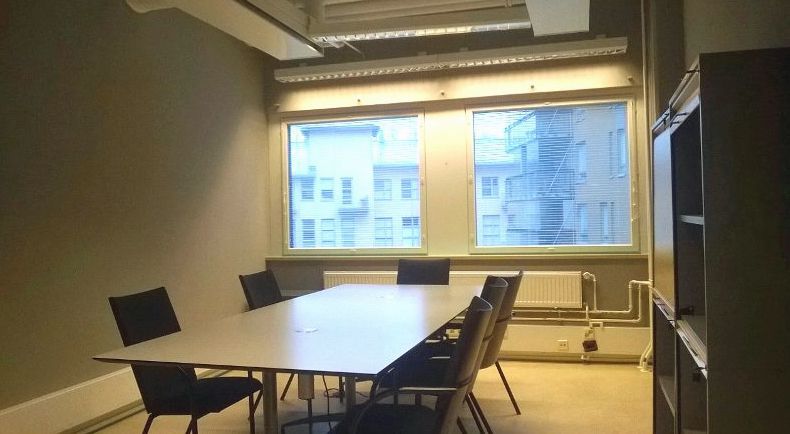 Avara ja valoisa kulmahuoneisto, joka jakautuu tällä hetkellä kahteen erillisen tilaan. Yhteiskäyttöiset keittiö- ja sosiaalitilat sijaitsevat käytävällä.
