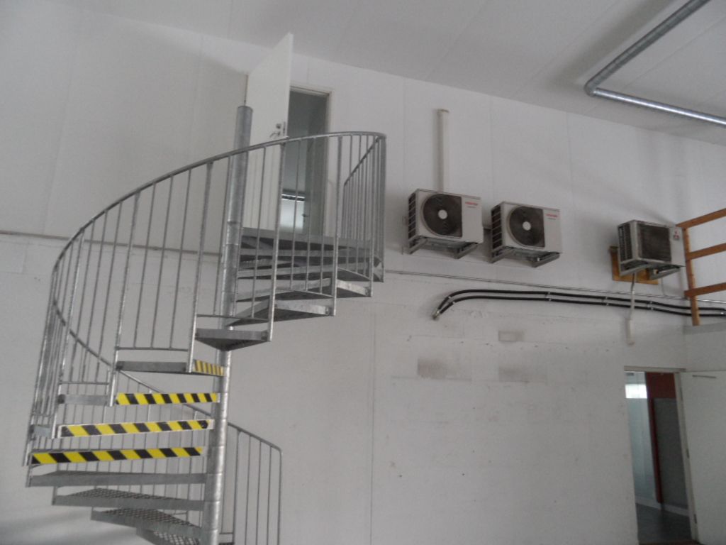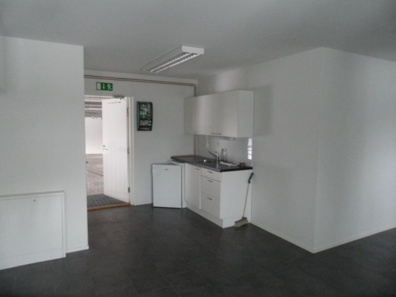 Toimisto- ja sosiaalitilat omalla sisäänkäynnillä rakennuksen päädystä.