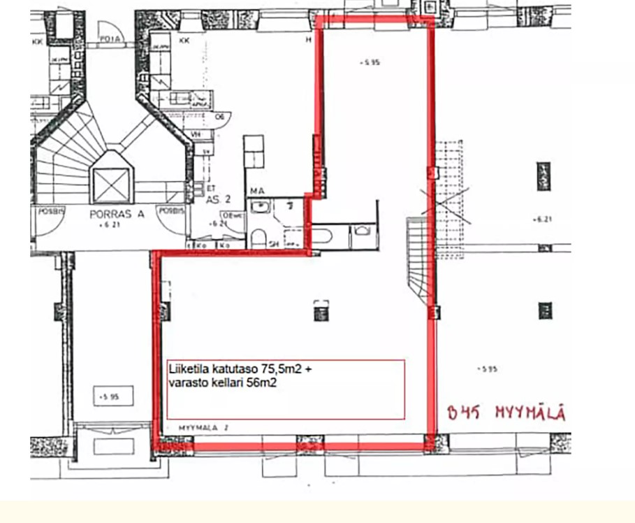 Vuokrataan valoisa katutason liiketila jossa isot ikkunat kadulle. Katutasossa 75,5m2 liiketilaa ja kellarikerroksessa 56m2 varastotilaa. Tila ei sovellu ravintola- tai kahvilatoimintaan.