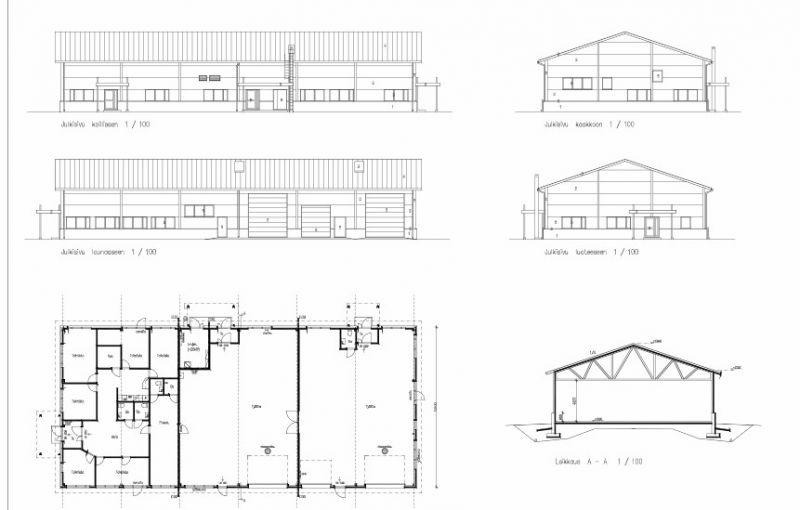 * Tuotanto/varastotilojen korkeus 5 m. Tiloihin 2 käyntiovea sekä 3 nosto-ovea.