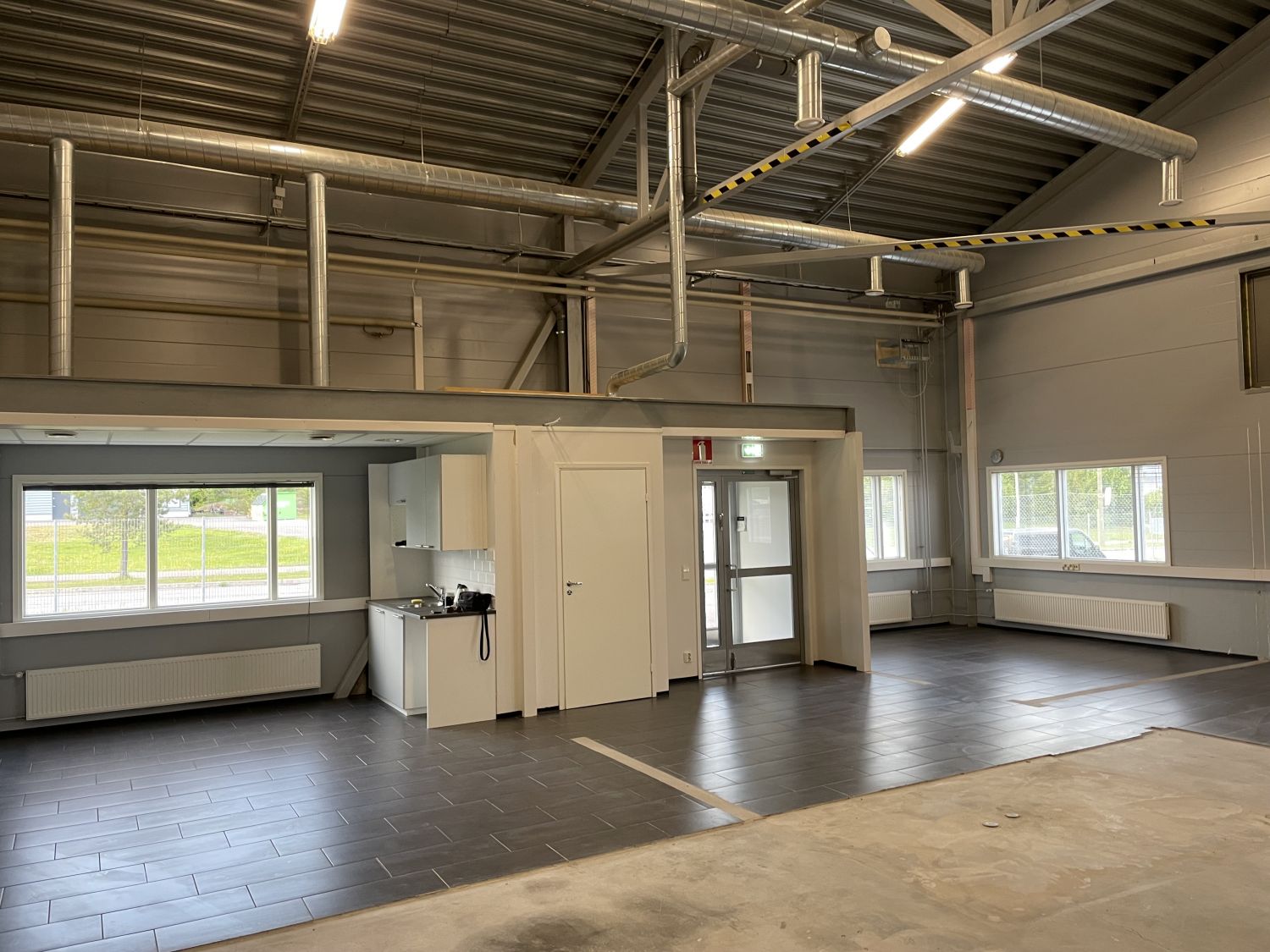 * Tilat tarvittaessa jaettavissa 1-3 toimitilaksi, joihin jokaiseen oma katettu ja tuulikaapilla varustettu avara sisäänkäynti ulkoa.