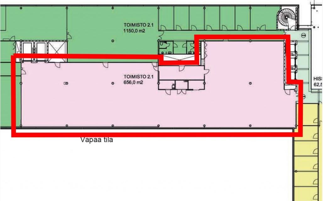 Vuokrataan 763 m2 toimistotila kiinteistön 2. kerroksesta. Ohessa havainnollistavia kuvia kiinteistön tiloista.