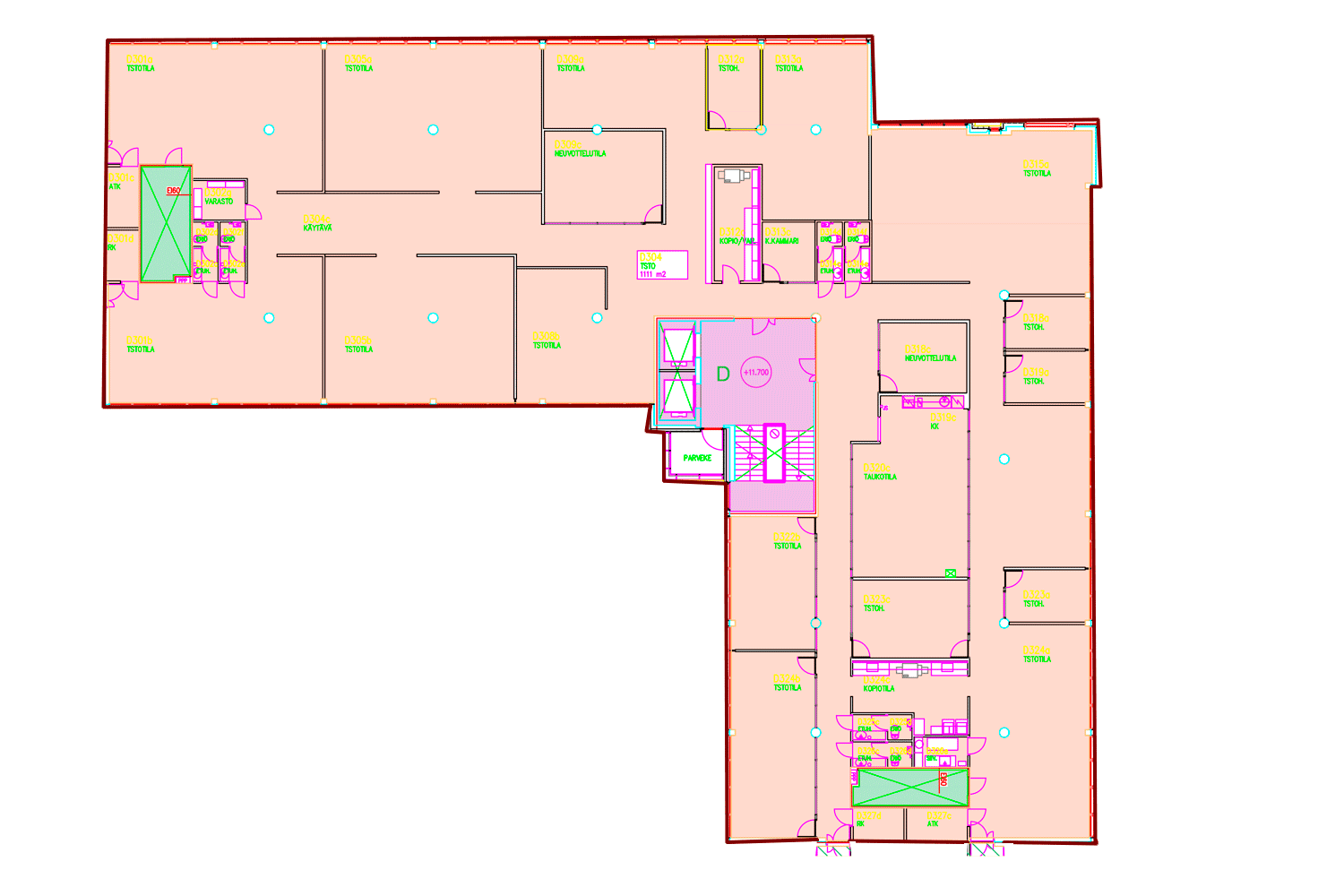 - 1132,5 m2, 4. krs; jaettavissa 590/520 m2 tai 248,5/420/428 m2. Tilaratkaisu muokattavissa tarpeiden mukaan.