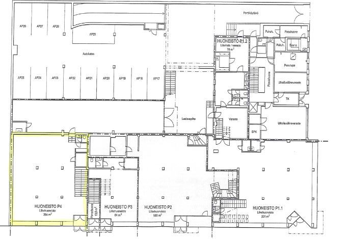 Katutason liiketilassa (254 m2) isot näyteikkunat kadulle. Liiketilan alakerrassa on 431m2 tilaa, joka soveltuu varastokäyttöön.