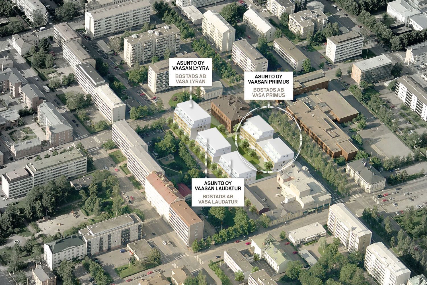 Uusia liiketiloja myynnissä Vaasan Kirkkopuistikolla Flickis-korttelissa