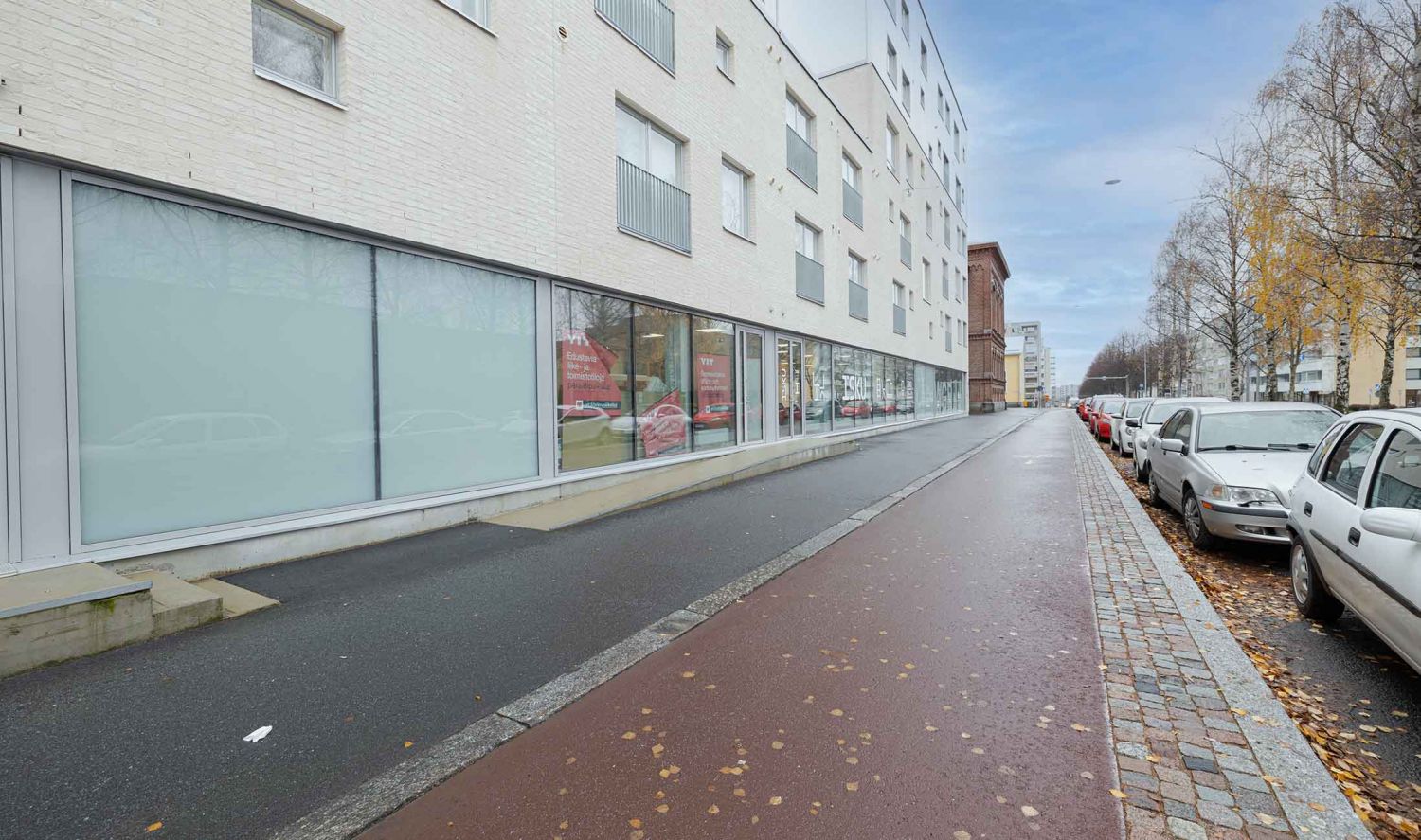 Paikkana tämä kohde on mukavasti keskustan ja Palosaaren välisen kävely- ja pyöräliikenteen varrella, monien oppilaitosten ja työpaikkojen lähettyvillä. Myytäviä liiketiloja on jäljellä enää yksi 61 m². Ota yhteyttä ja kysy lisää!