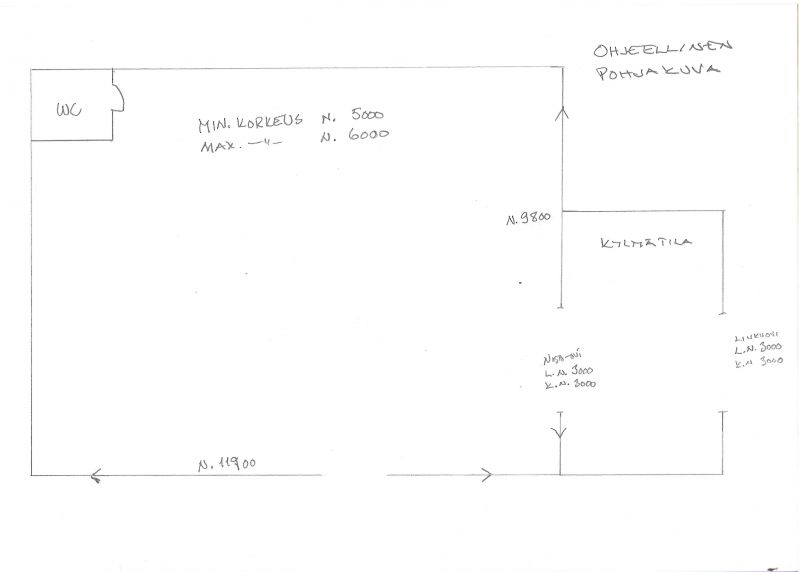 Kokonaispinta-ala n. 201,5 krs-m² (126 krs-m² lämmintä ja 38,5 krs-m² kylmää + 37 krs-m² parvi).