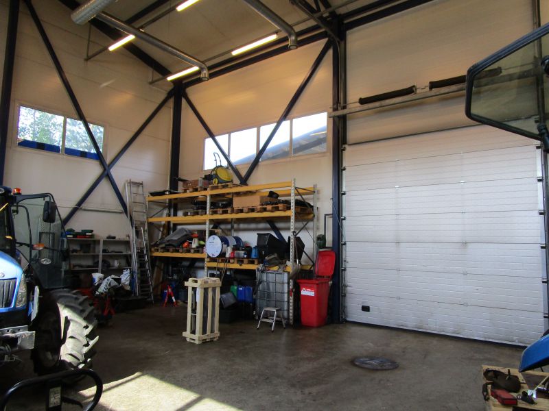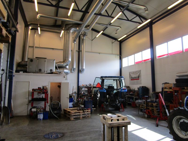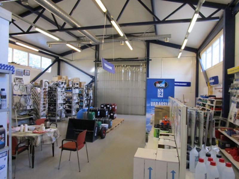 Lattialämmitys (sähkö), ilmalämpöpumput, öljynerotuskaivot, isot nosto-ovet, teräsrunko ja peltielementti.