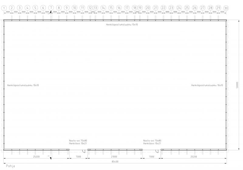 Isot nosto-ovet (L 7 m x K 7,5 m). Hyvä valaistus ja ilmanvaihto sekä muutama sähköpiste. Todella kestävä lattia ja seinärakenne.