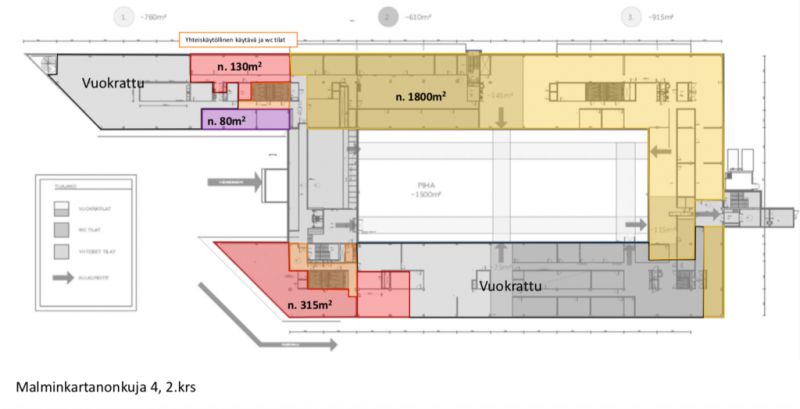 Tämä 851m2 toimistotila sijaitsee kiinteistön 2. kerroksessa. Se on pääosin huoneellista ja sisältää omat sosiaalitilat. Tilat ovat kuitenkin muokattavissa tarpeen mukaan. Tilan vieressä on tilava tavarahissi.