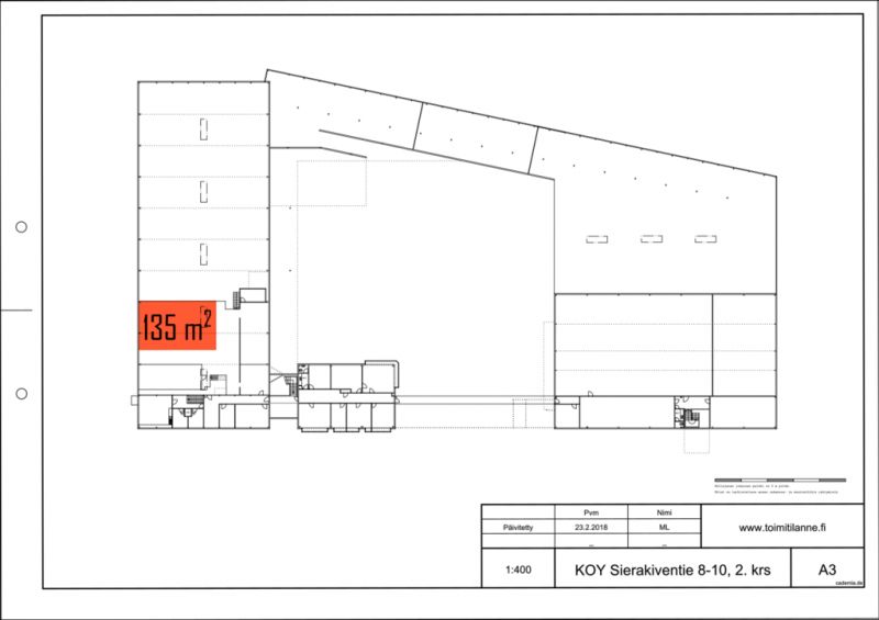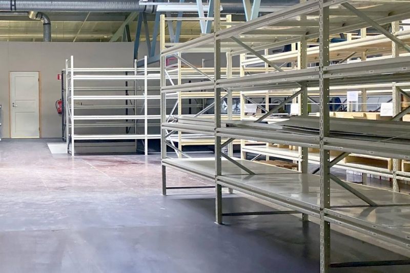 Tämän 2. kerroksen 102m2 tilan korkeus on 2,5m ja se sopii hyvin esimerkiksi pientavaroiden varastointiin. Varastossa on runsaasti hyllytilaa ja se on mahdollista jakaa pienempiin osiin. Tila on kuiva ja lämmin. Tilan kokonaiskoko 135m2, josta vapaana 102m2.