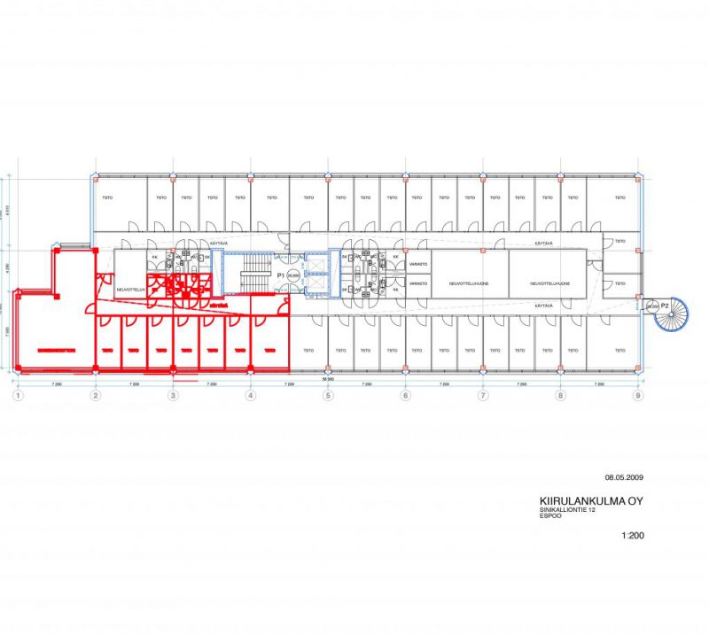Toimistotila on helposti muunneltavissa käyttäjän tarpeisiin sopivaksi niin avokonttoriksi kuin myös huonetoimistoksi.