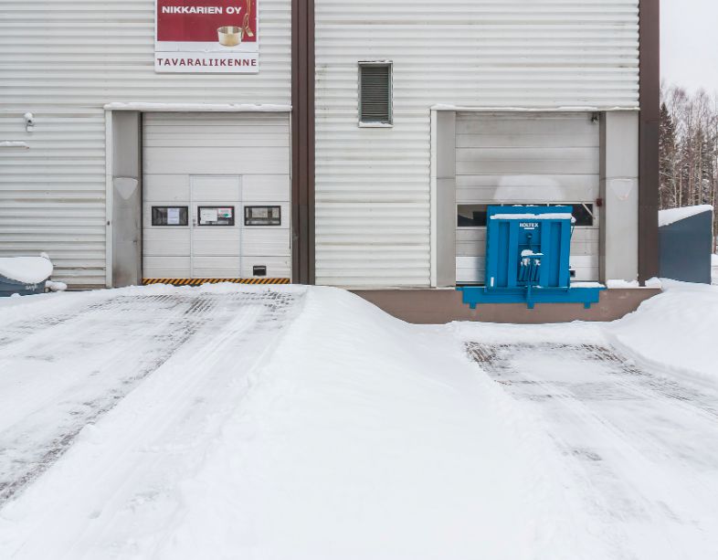 Katutason n.6m korkeaa, sisään ajettavaa toimitilaa mihin myös Lastauslaituri missä