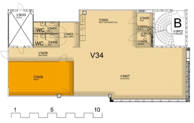 Spektrin KVINTTI-talossa sijaitseva valoisa ja tehokas toimistotila. Huoneisto käsittää avotilaa ja huonetoimistoa, muutostyöt ovat mahdollisia.