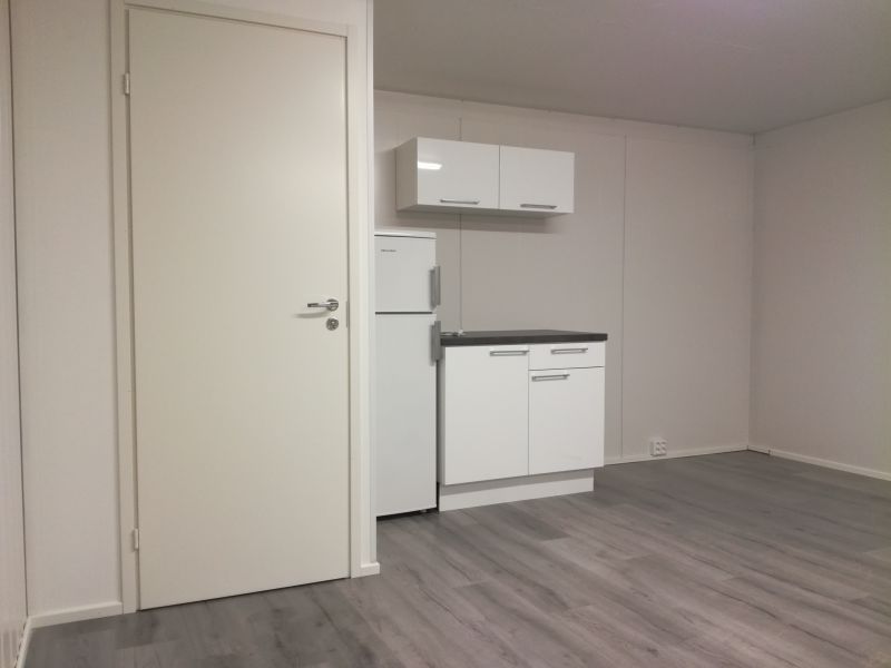 Pohjapinta-ala 38,5 ja lisänä 17m2 parvi, jossa wc, keittiö-osa yläkaapeilla ja jenkkijääkaappi.