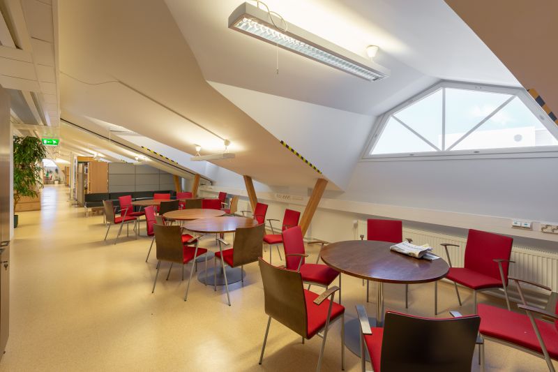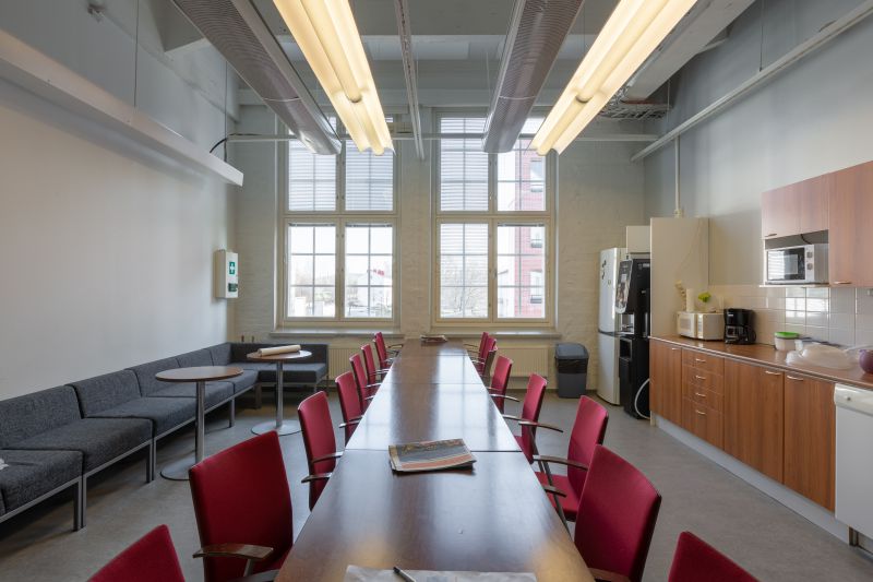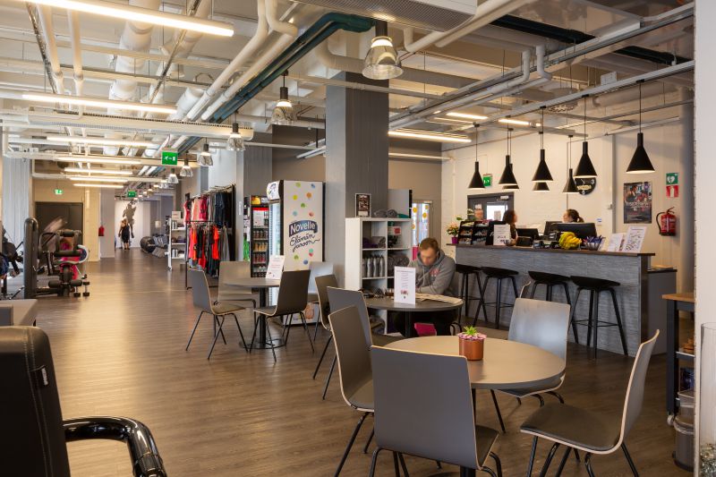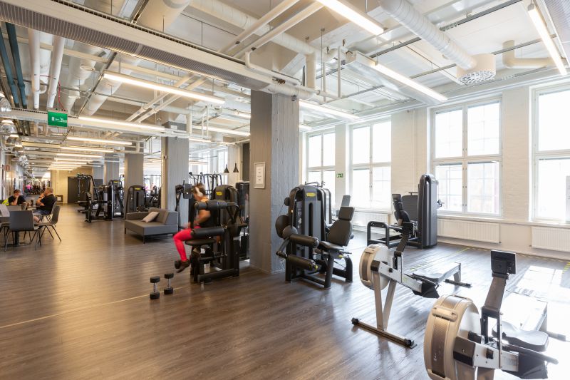 Työhyvinvointia tuo viihtyisien tilojen lisäksi monipuolinen ja iso kuntosali ja parturi-kampaamo.