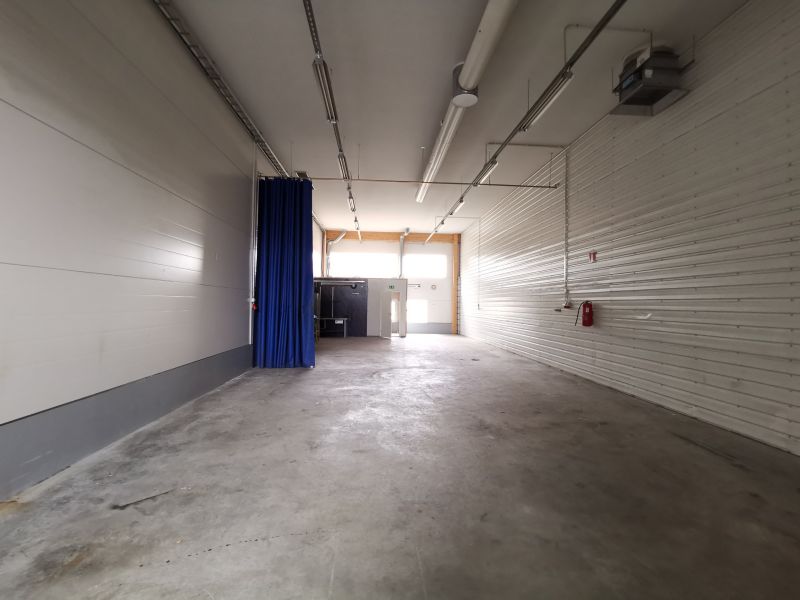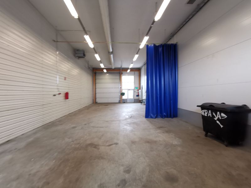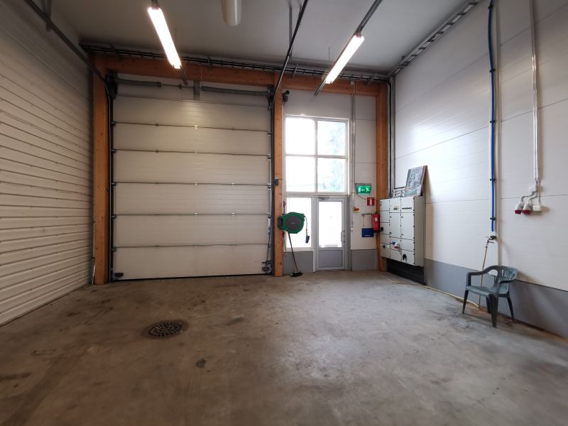 Yhtenäinen 21,57 x 7,24 m tila, jossa takavasemmalla pieni taukohuone ja wc suihkukaapilla. Korkeus 4,6-5 m. Tilassa nosto-ovi 3,6 x 4,2 m, lattialämmitys (sähkö) ja ilmanvaihto lämmön talteenotolla. 3 kk takuu.