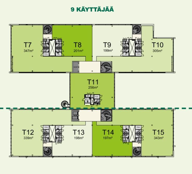 Vuokrataan modernia toimistotilaa Ultimes Business Gardenista, Helsingin Pitäjänmäestä. Tilat ovat erittäin muuntautumiskykyiset. Mahdollista vuokrata myös kokonainen kerros yrityksen käyttöön. Ohessa havainnollistava, koko kerroksen pohjakuva.