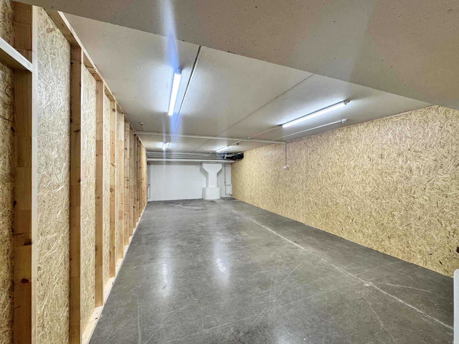 Sisään ajettava (taiteovi) tila. Käyntiovi katutasosta. Tilan korkeus 2,5 m. Tilassa kolme pylvästä. Neljä autopaikkaa, asfaltoitu piha. Kaukolämpö.