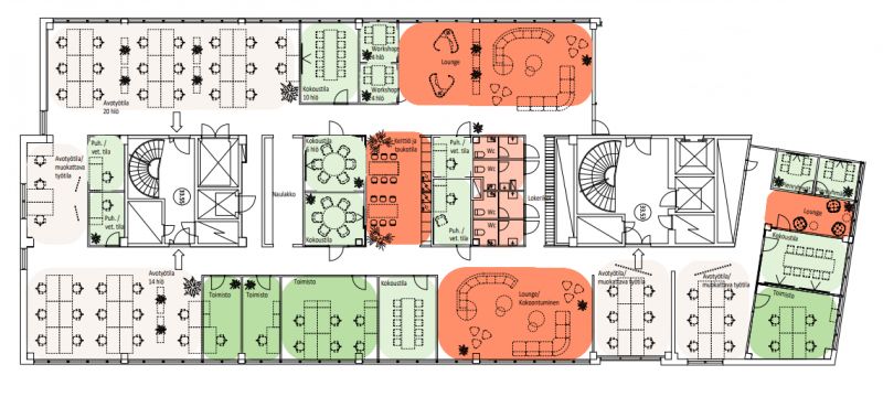 Vuokrattavana avaraa, valoisaa, pääosin avotilasta koostuvaa toimitilaa. Tila on muunneltavissa käyttäjän toiveiden mukaan.
