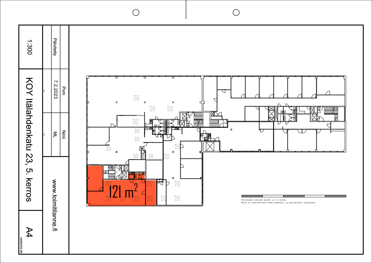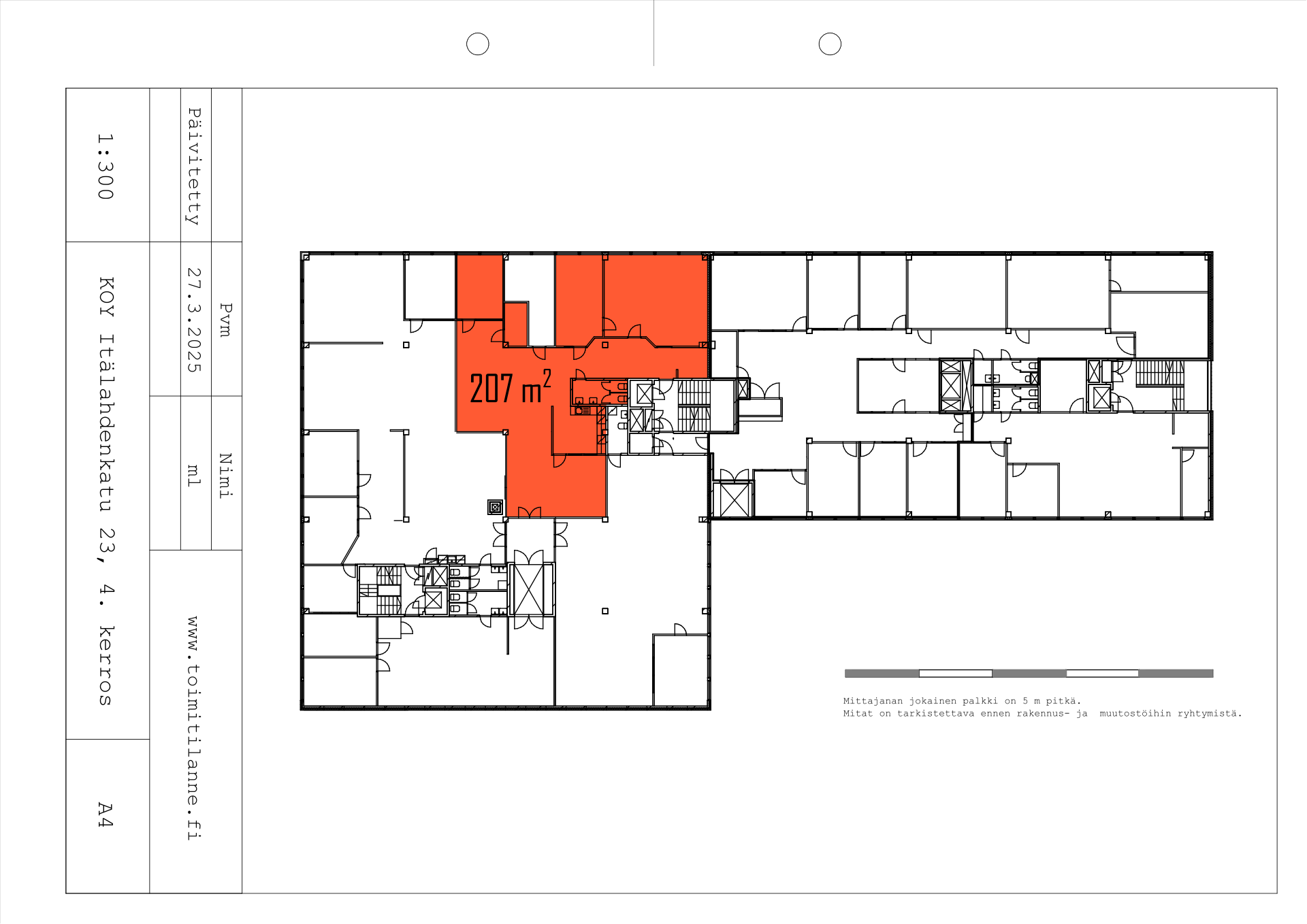 Vapaat toimistotilat: 8 m², 24 m², 110 m², 118 m², 121 m², 140 m² ja 207 m².