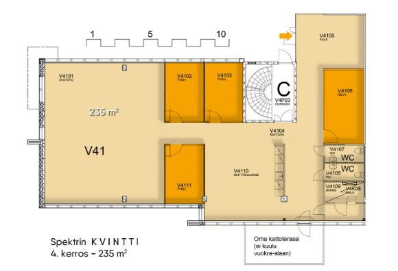 • Spektrin kokonaisala on 45 500 m², vuokrattavaa 33.000m2