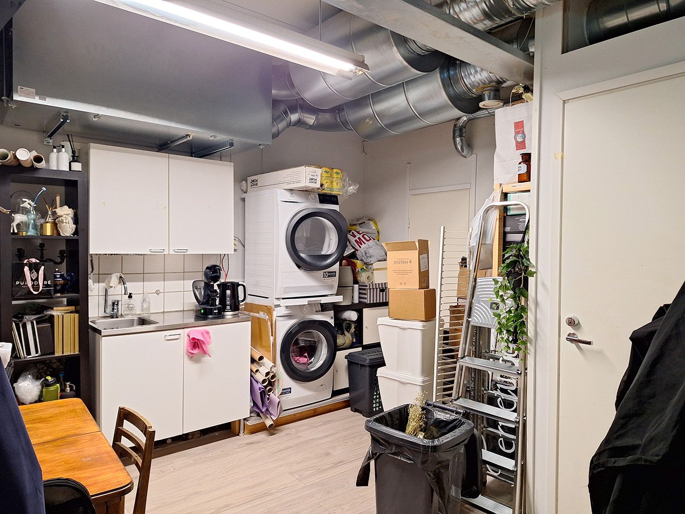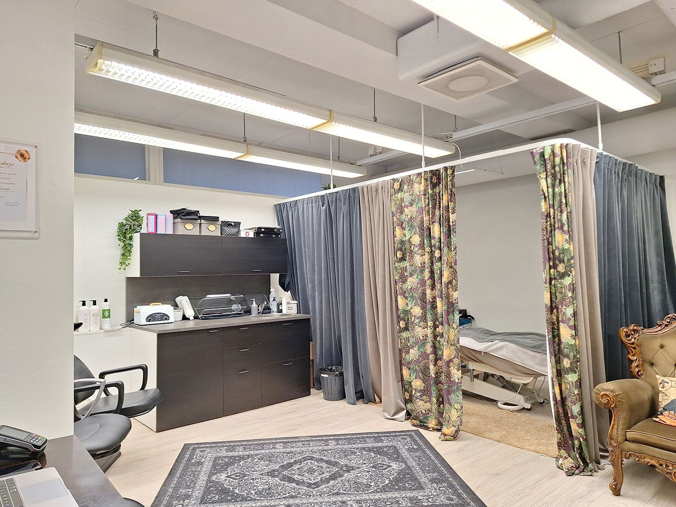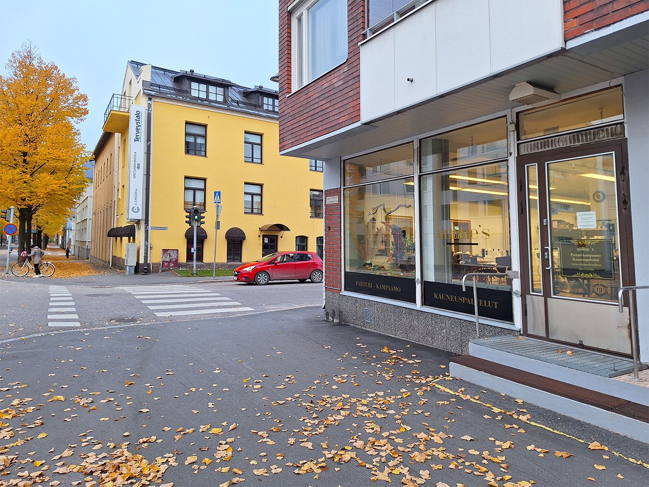 Tilassa on kampaamolle tai kauneushoitolalle vesipisteet valmiina. Erillinen takahuone, missä pieni keittiö ja siivouskomero. Liikehuoneiston kautta kulku wc-tilaan.