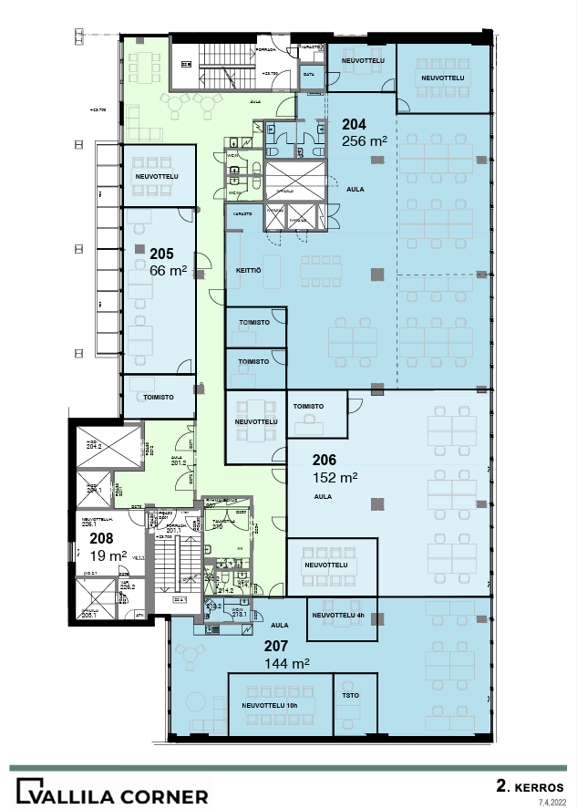 Rakennus osoitteessa Kuortaneenkatu 2 rakennettiin vuonna 1990 vanhan tehdashallin tilalle ja se yhdistettiin vuonna 1963 rakennettuun kiinteistöön osoitteessa Elimäenkatu 22. Vallila Corner on upeasti uudistettu, valoisa ja viihtyisä toimitilakiinteistö, joka sijaitsee keskeisellä paikalla Vallilassa, sujuvien liikenneyhteyksien varrella.