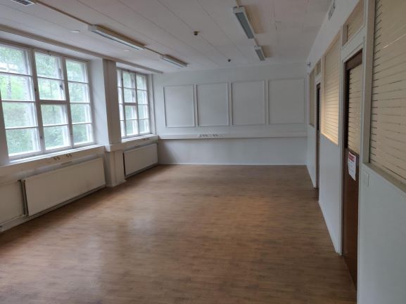 Tämä 26 m2 viihtyisä toimisto on rakennuksen toisessa kerroksessa. Näkymät tästä ovat valtatie 12 suuntaan. Kerroksessa on yhteiskäyttöiset sosiaalitilat. Rakennuksessa on oma lounasruokala.