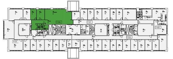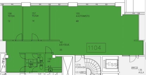 Ensimmäisen kerroksen toimisto, joka koostuu kahdesta työhuoneesta ja avotilasta. Kaksi wc-tilaa.