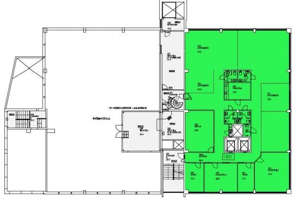 Siisti avotoimistotila kiinteistön kolmannesta kerroksesta.