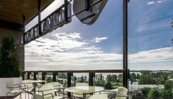 Modernia avo-/monitilatoimistoa. Tapiolan Hohka on valoa huokuva katseenvangitsija keskeisellä sijainnilla Länsiväylän varrella Espoossa.