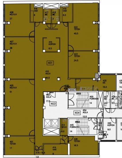 Erikokoisiin huoneisiin jaettua siisti toimisto,
