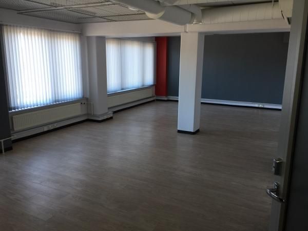 Valoisa, avotoimistotila rakennuksen ylimmässä kerroksessa. Yhteiset keittiö- ja sosiaalitilat.