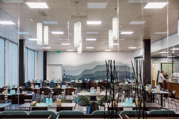 Aulapalvelu, henkilöstöravintola, auditorio, neuvottelutilat, kuntosali, ja saunatilat